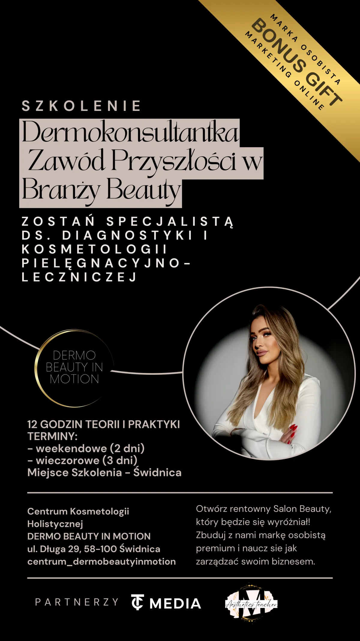 Dermokonsultacją i badadaniami skóry zajmuję się zawodowo już od ponad 10 lat. Jako dermokonsultantka współpracowałam z największymi koncernami kosmetycznymi, promując znane marki dermokosmetyków podczas badań skóry w aptekach na terenie całego Dolnego Śląska. W późniejszych latach poszłam o krok dalej w stronę kosmetologii i podczas licznych szkoleń i akademii beauty zdobyłam wiedzę i specjalizację z zakresu kosmetologii pielęgnacyjno-leczniczej, którą się pasjonuję. Wtedy też przeniosłam dermokonsultacje na grunt salonów kosmetycznych na terenie Dolnego Śląska i Opolszczyzny, gdzie w ramach mobilnego gabinetu świadczyłam usługi diagnostyczne, dermokonsultacje oraz dedykowane zabiegi kosmetologiczne dla klientek salonów i klinik medycyny estetycznej, co też czynię po dzień dzisiejszy.
